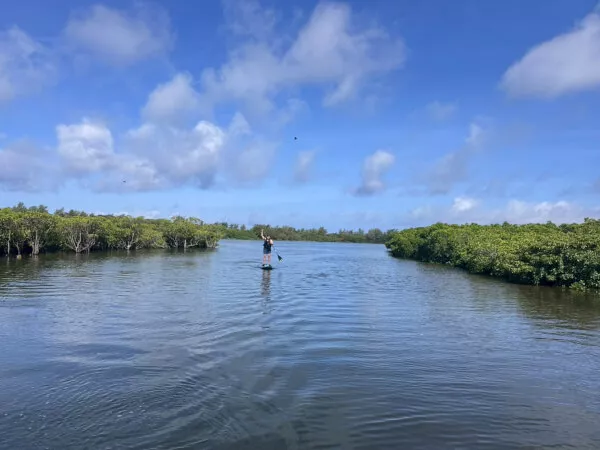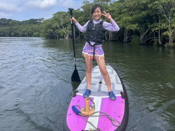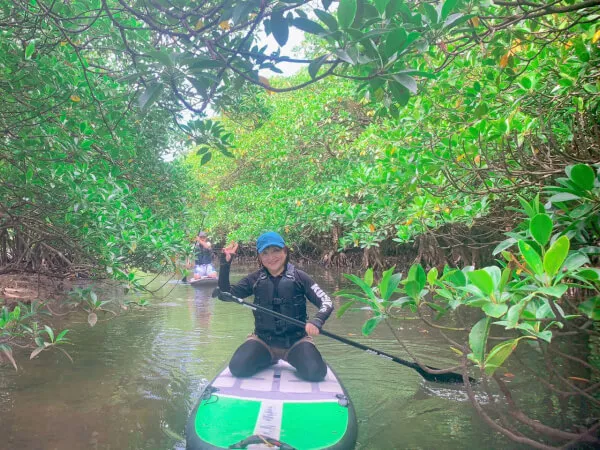 名蔵湾でマングローブや動植物が生息する手つかずの豊かな自然をSUPに乗って散策しに行こう!パドルを漕いで海上散歩しながら、マングローブを目指します。SUPならではの広い視界で、海や動植物を間近で感じることができるのが魅力のひとつ。未経験の方でもカンタンに乗れ、ご自身のペ-スで漕ぐことができます。