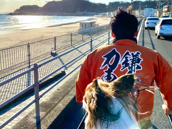 大切なワンちゃんと一緒に鎌倉を巡る、特別な人力車コースです。
