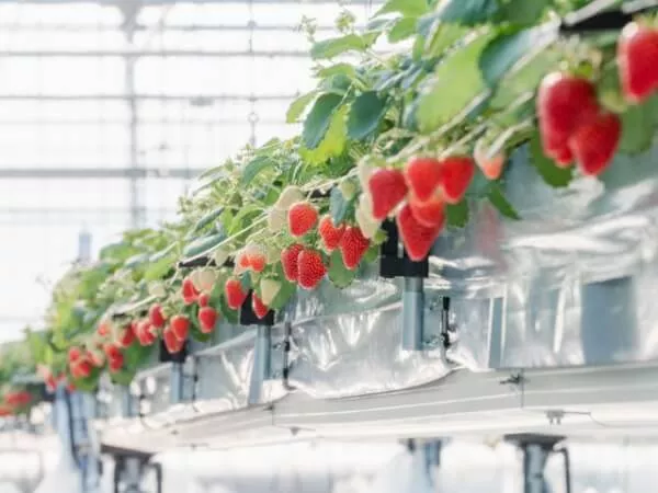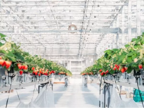 イチゴ狩りのハウス内はバリアフリーでシートが敷かれてた高設栽培なのでおしゃれな服でも安心で、衛生面を気にかけた設備が特徴的です。