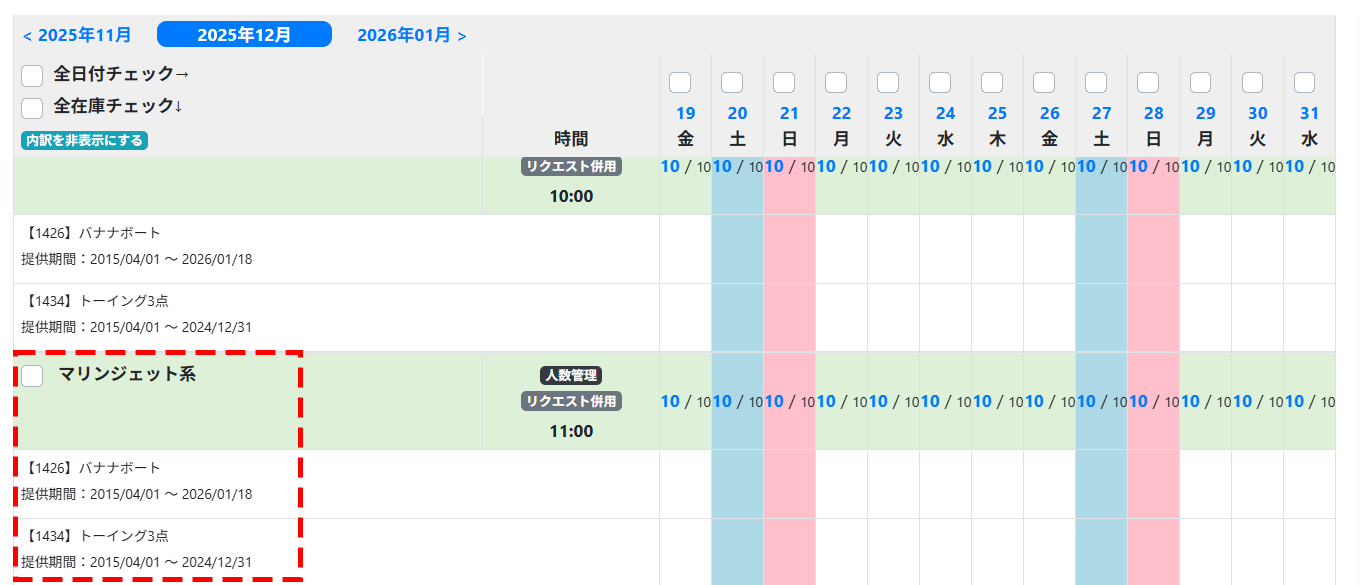 指定プランをグループ分けして在庫管理することが可能です。