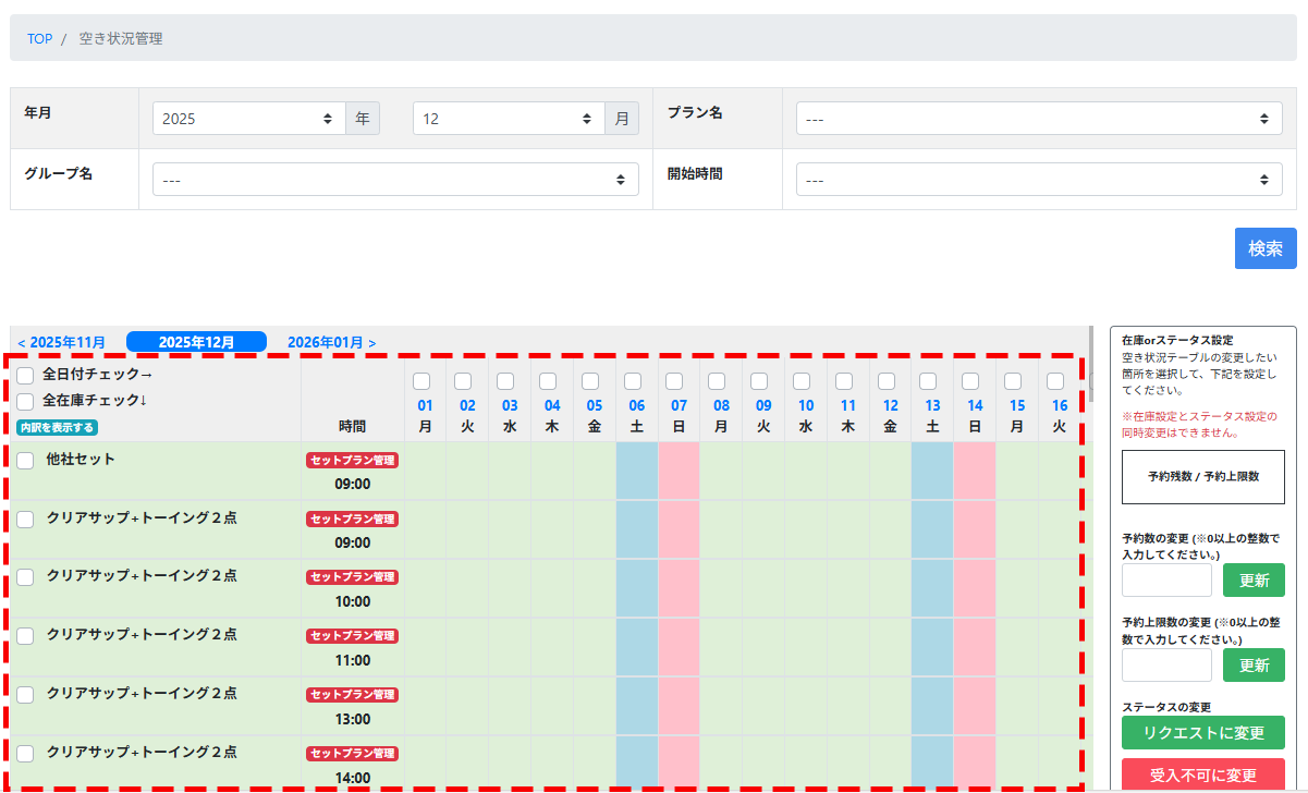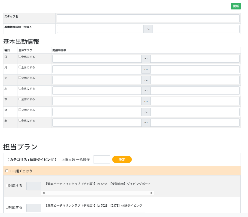 スタッフ様毎のスキル・シフトを管理画面へ登録いただければ、スタッフ様の出勤状況に応じて空き状況管理(予約カレンダー)を自動更新いたします。