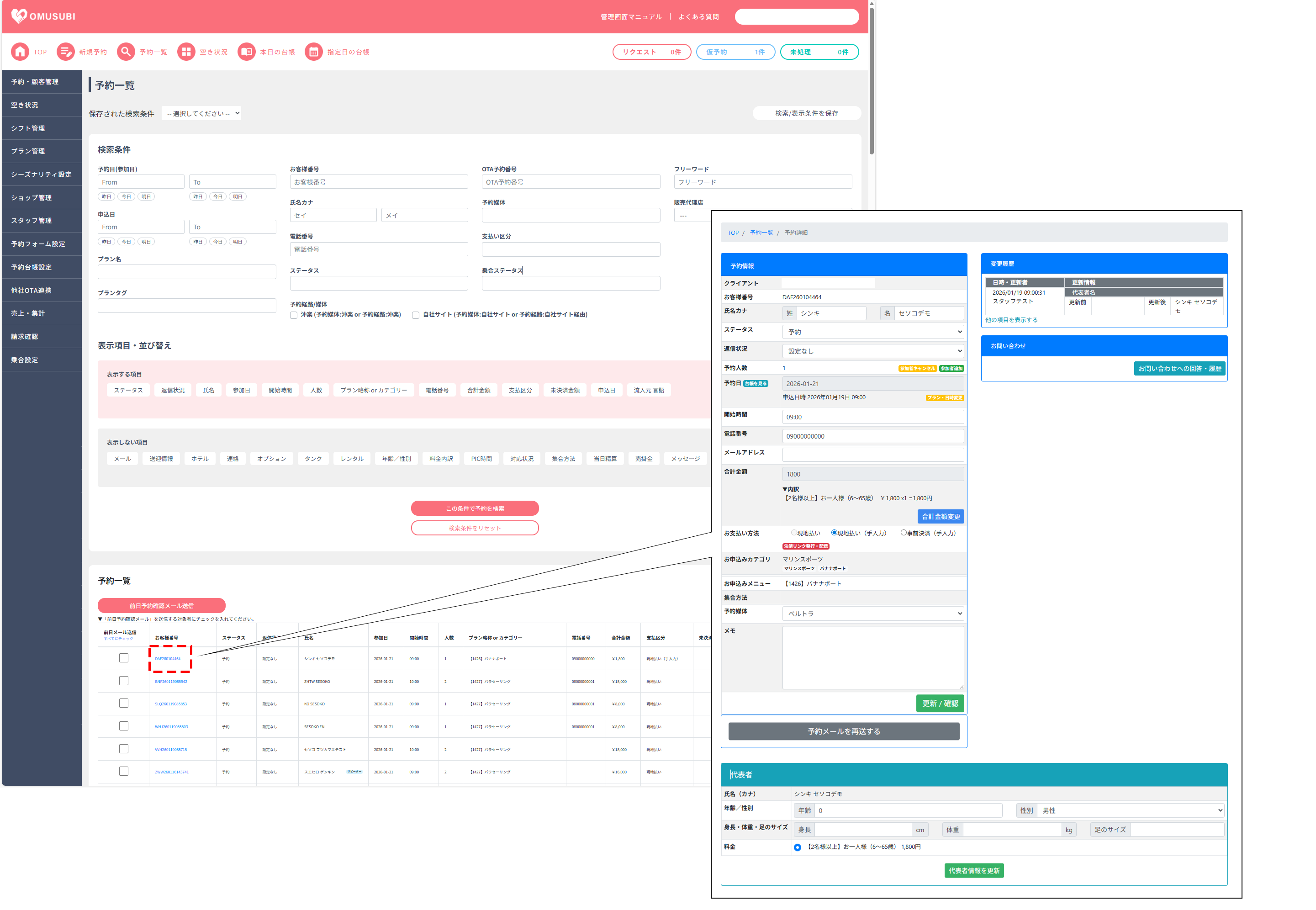 現場バックオフィス機能|予約情報管理(人数/プラン/予約日時変更)