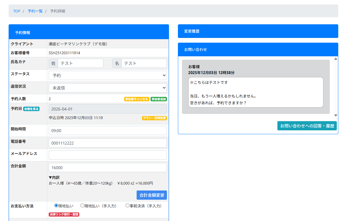現場バックオフィス機能|予約者へのメッセージ送受信