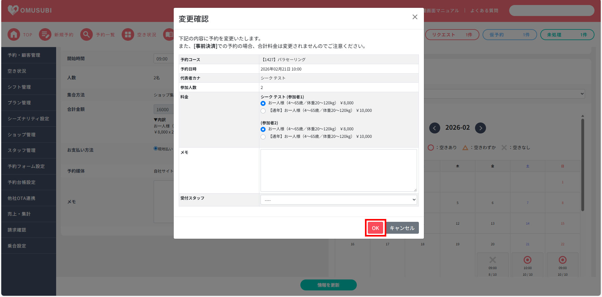 予約情報管理(人数/プラン/日時変更)|プラン・日時変更