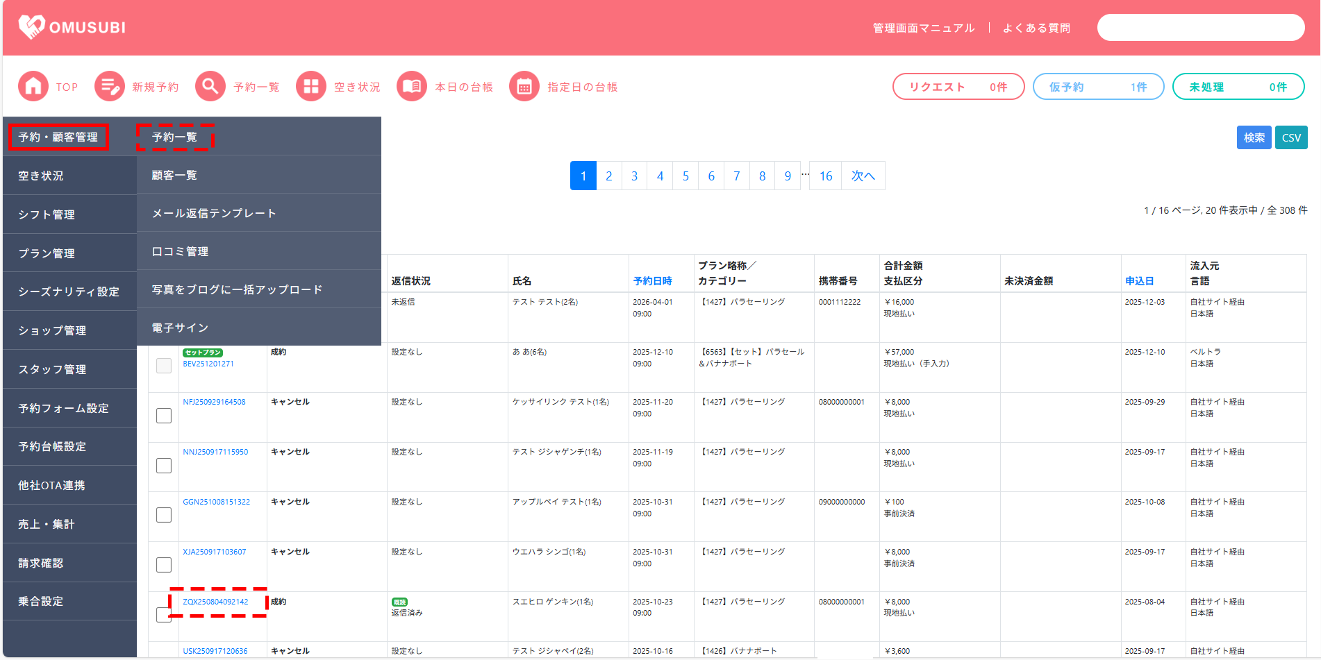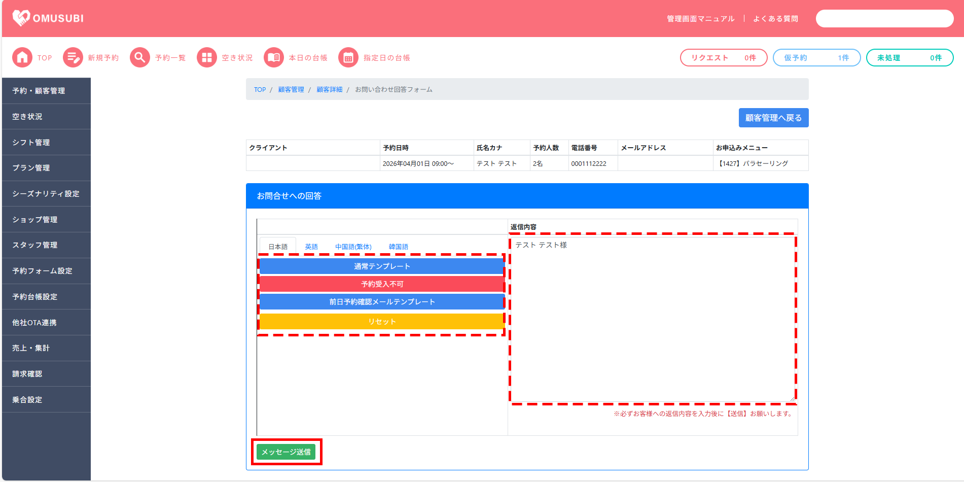 予約時のメッセージ返信手順/予約通知メールの編集方法が以下の通りです。
