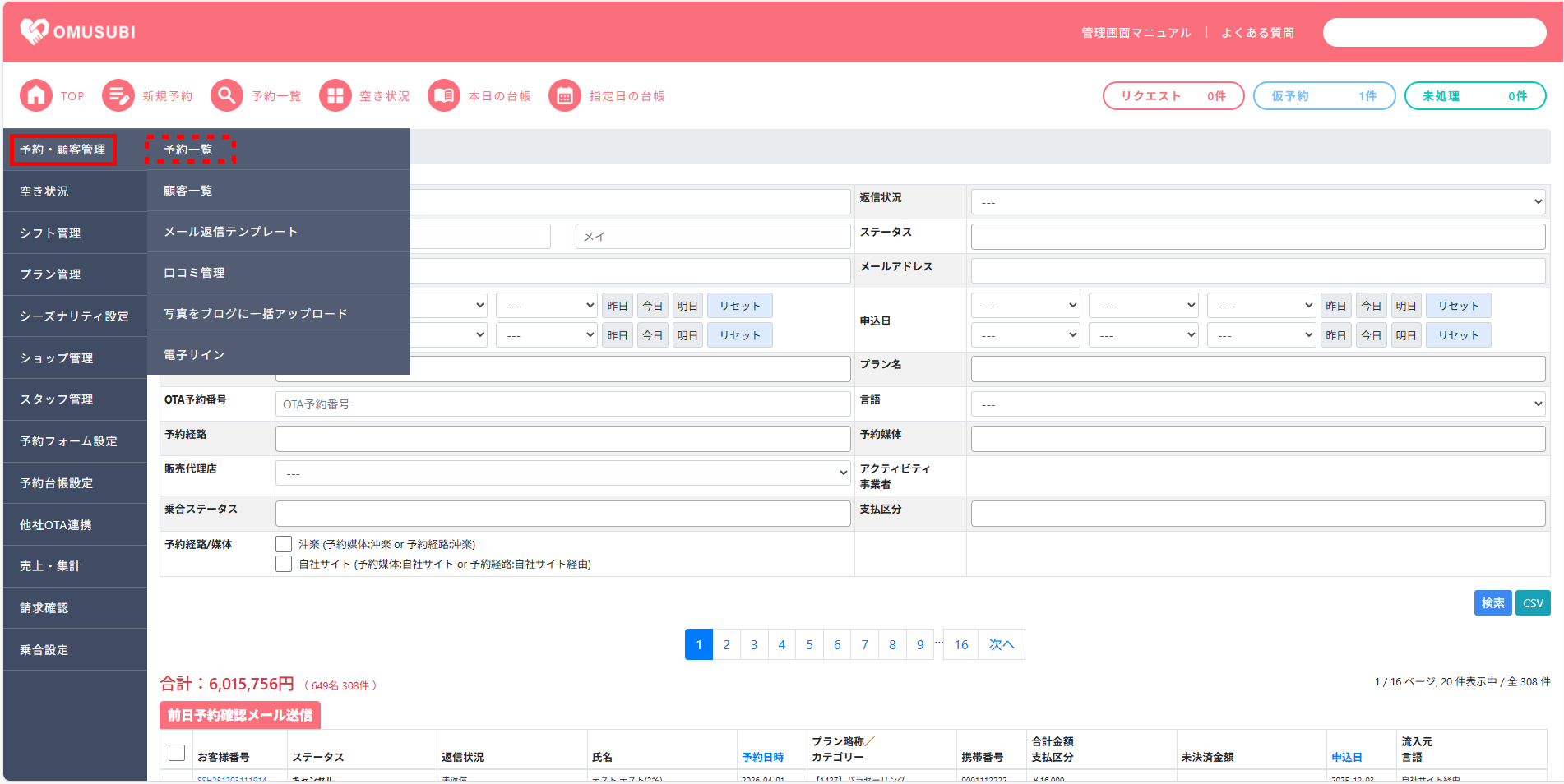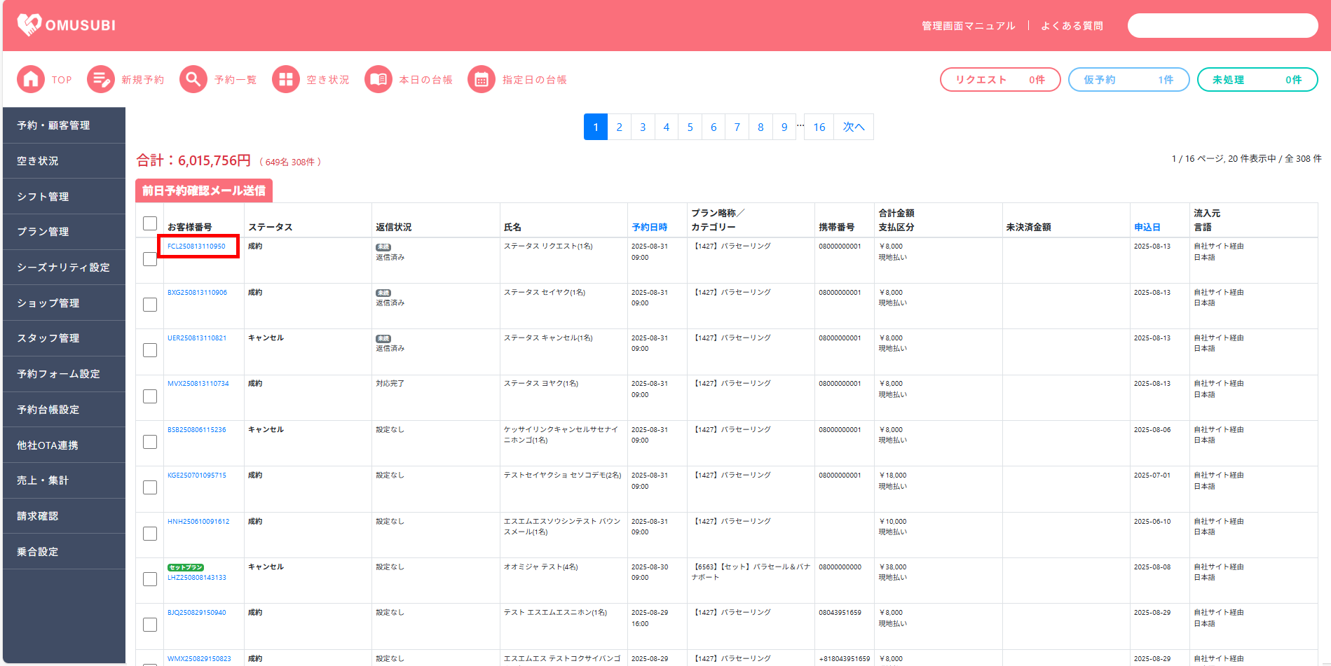OMUSUBI管理画面を開き、ご予約の詳細をご確認ください。