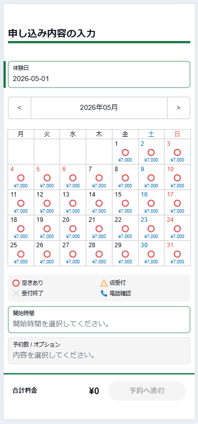 HP上に予約フォームを設置することによりお客様ご自身でご希望のプランの予約を行って頂くことができます。