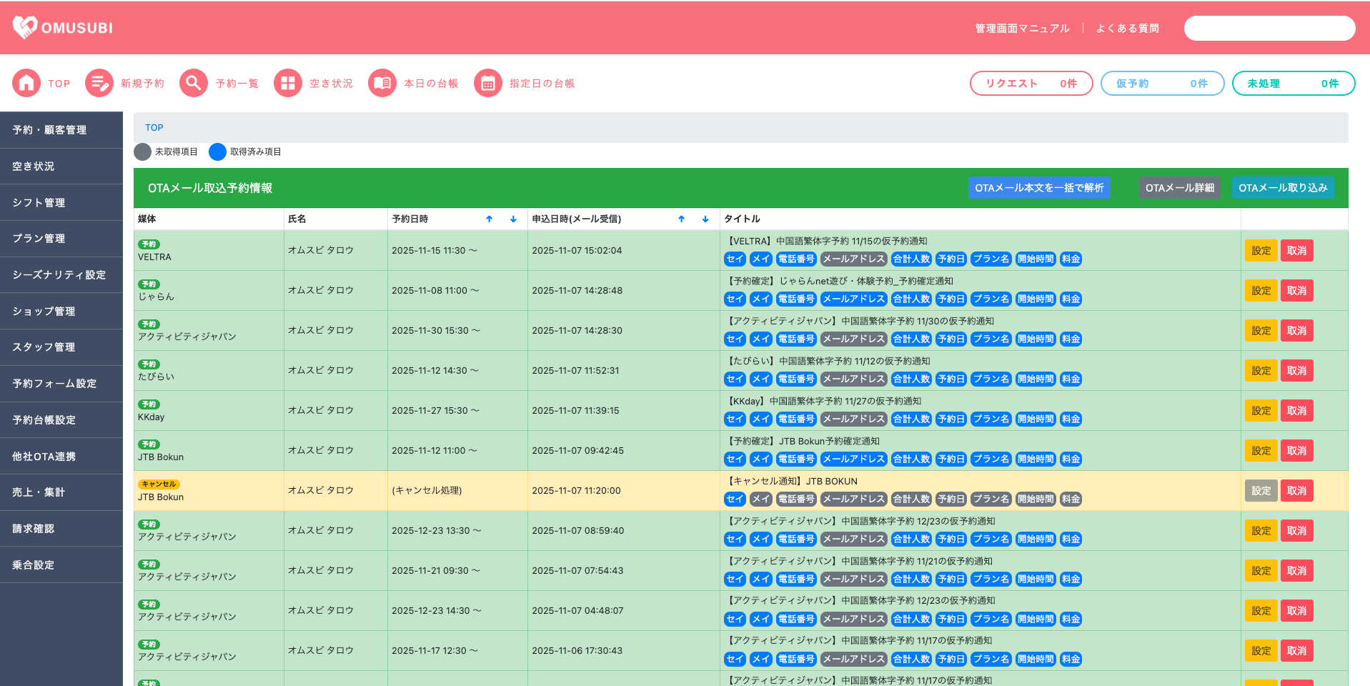 各OTA(予約サイト)の新規予約メールをGoogle提供サービスを使用し、OMUSUBI管理画面へ取り込みが可能です。