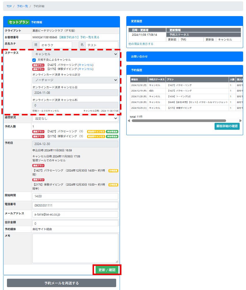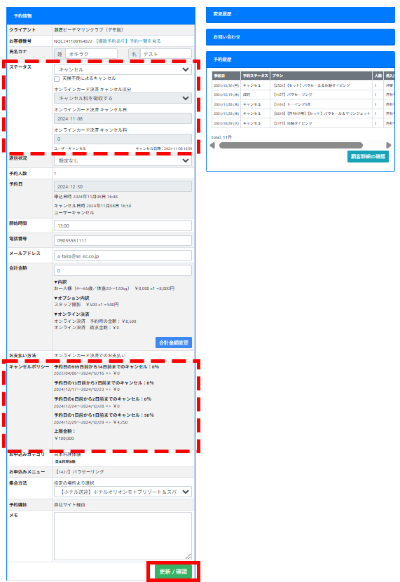 キャンセル処理方法が「キャンセル料を徴収する」「ノーチャージ(キャンセル料徴収なし)」いずれかより選択可能です。