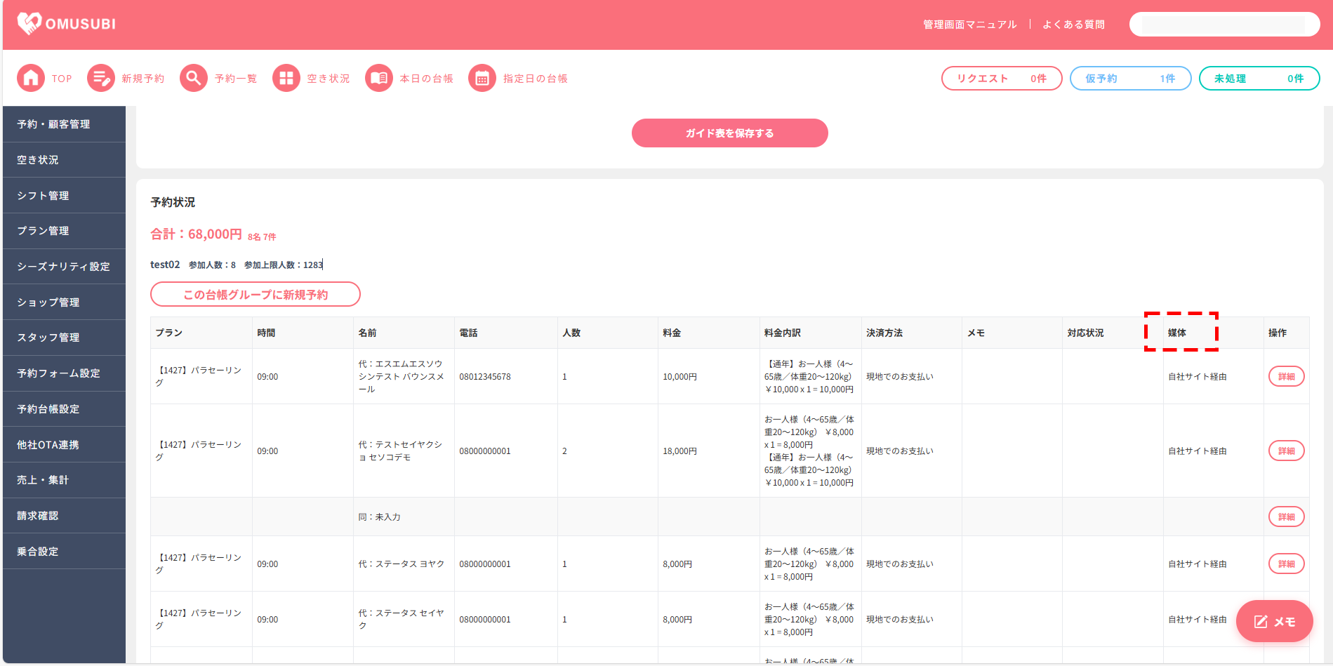 OMUSUBI管理画面側