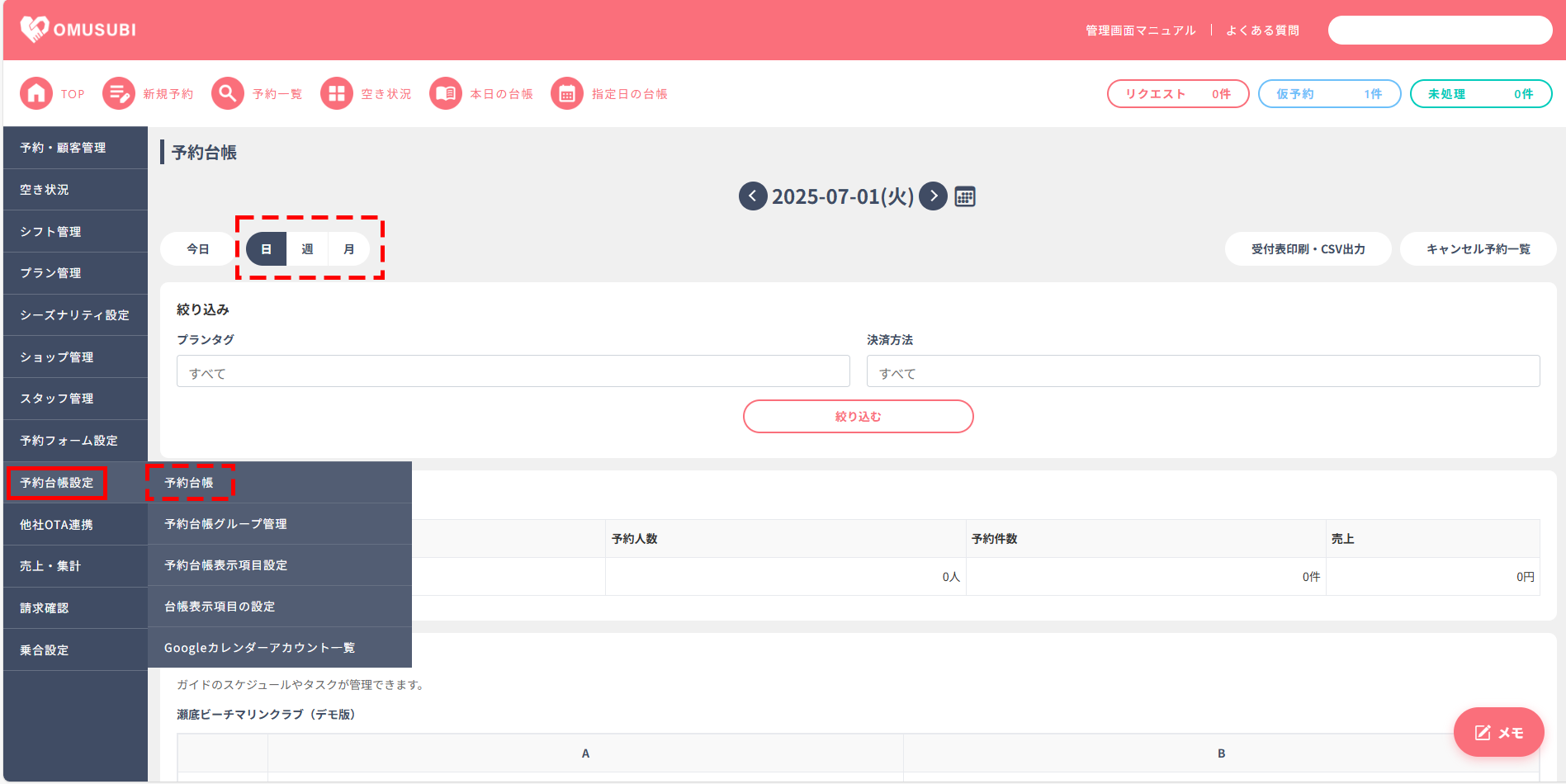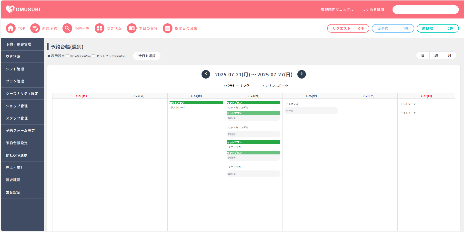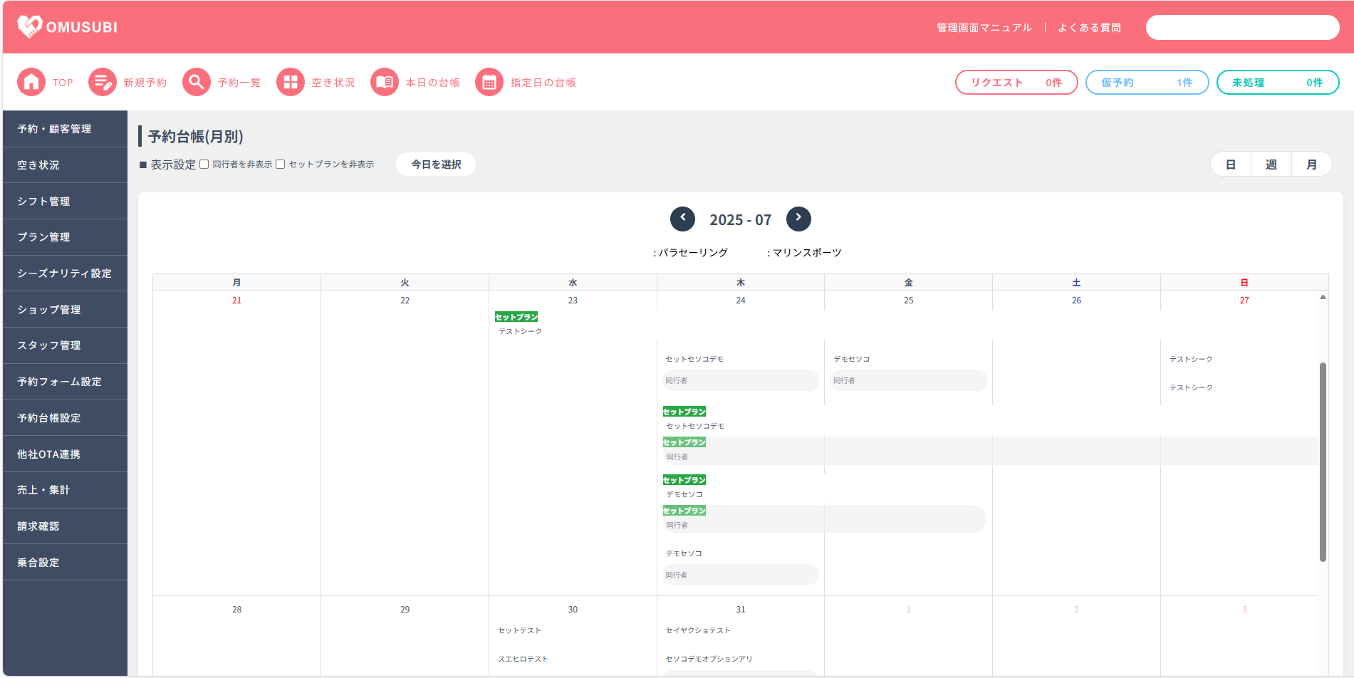 自社予約・各OTA予約情報を週別・月別で表示可能です。先予約状況を一目でご確認可能です。