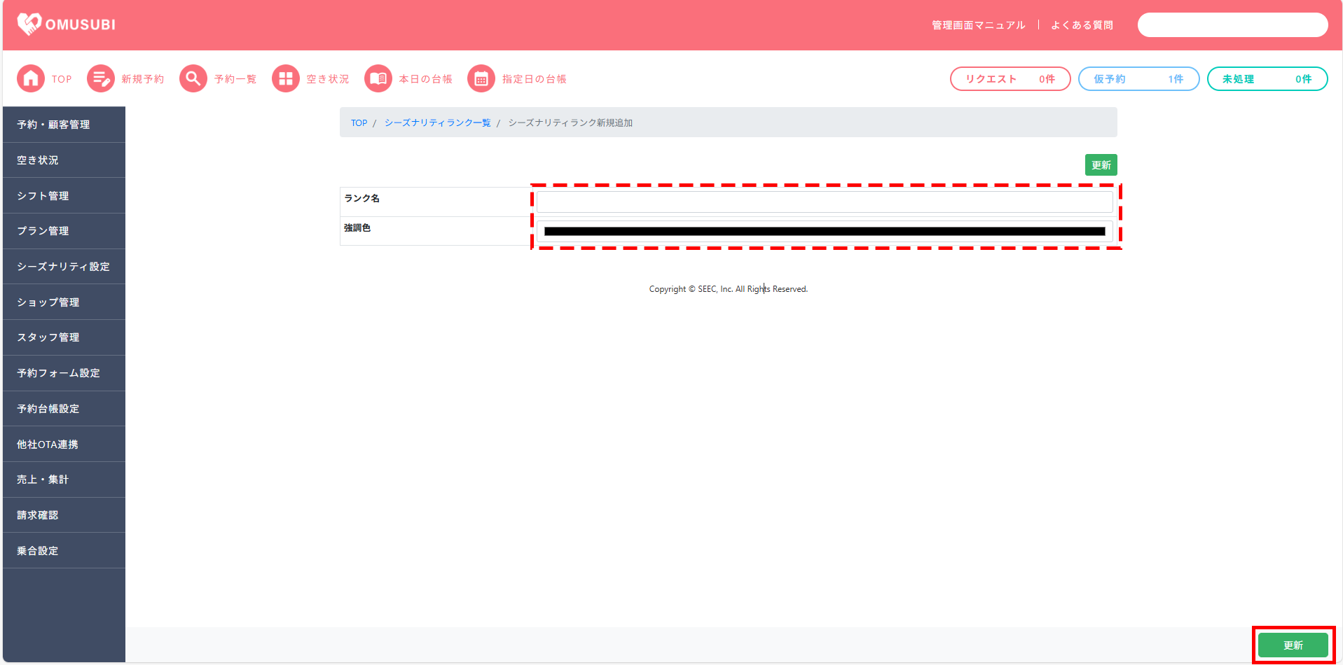 シーズナリティランク一覧設定方法は以下の通りです。