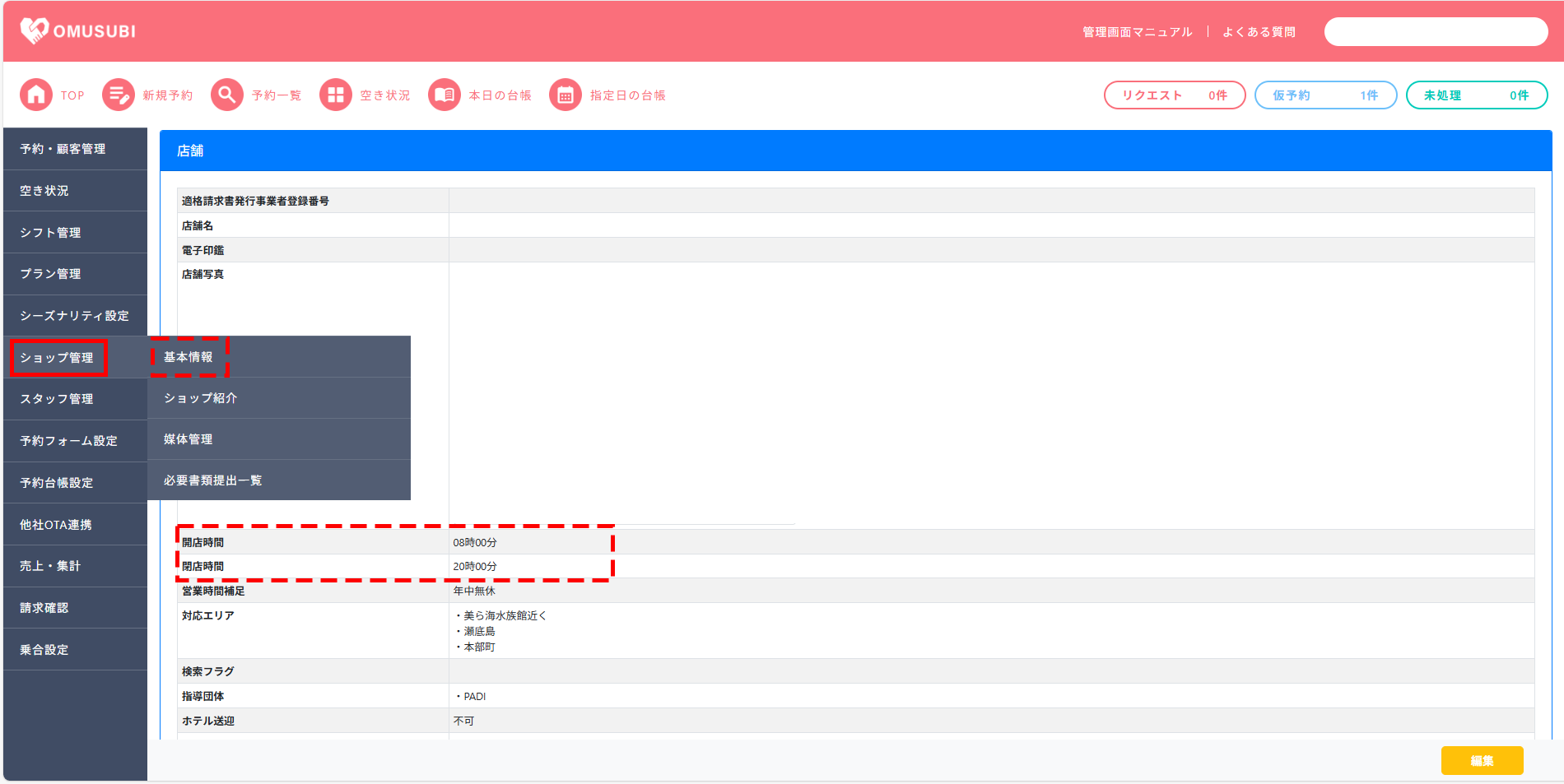 OMUSUBI管理画面側