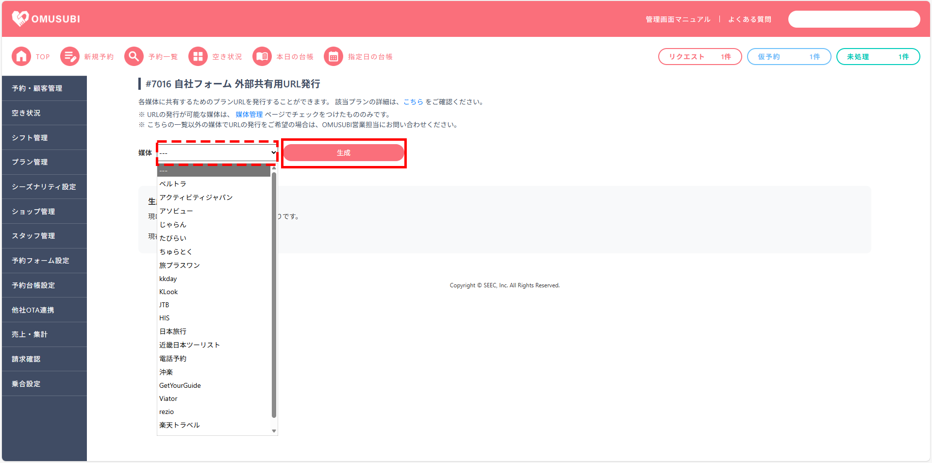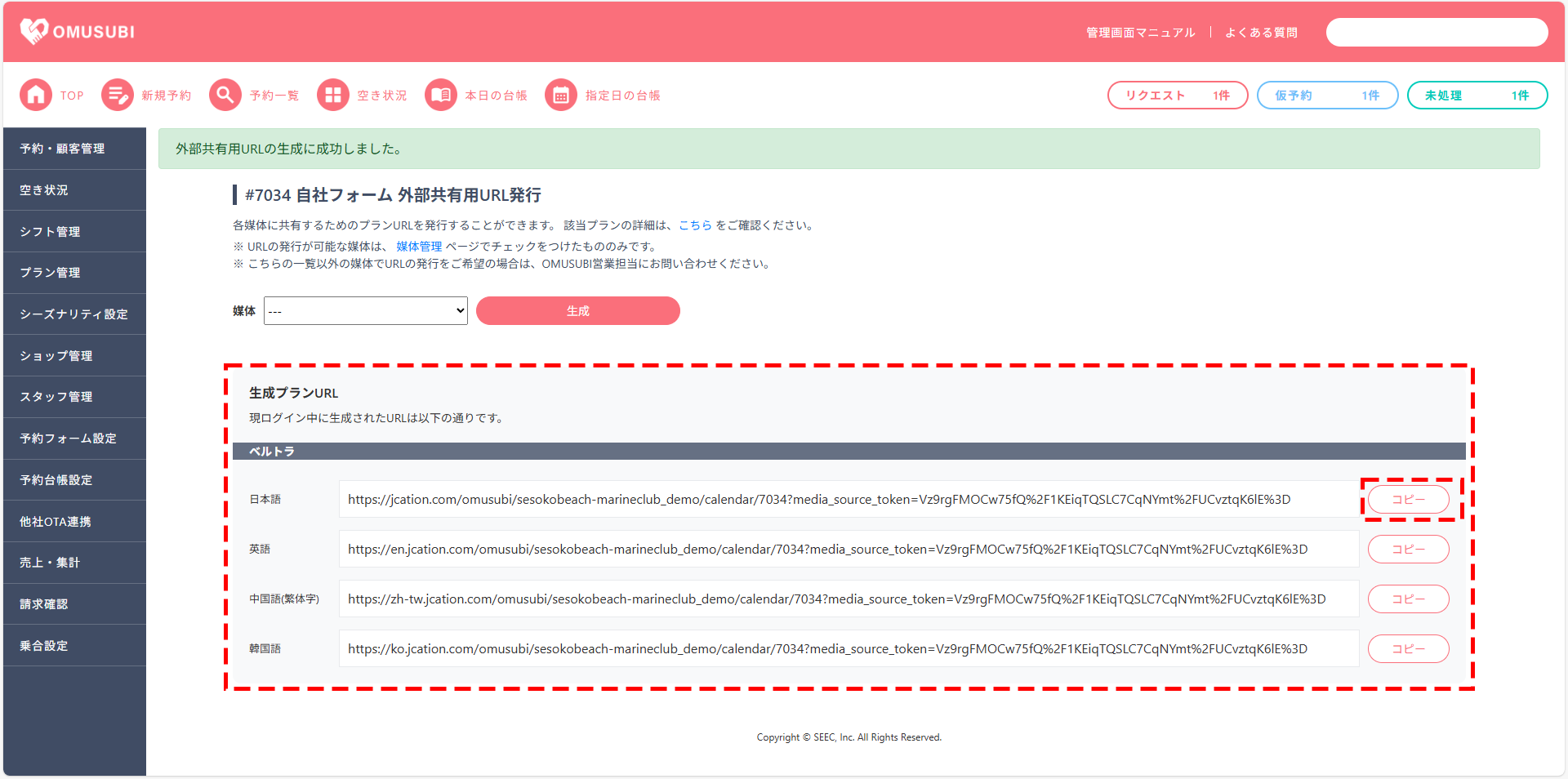 この共有リンクを利用することで、このリンクを通じて予約が発生した際に、どこの媒体からの送客かを把握することが可能です。
