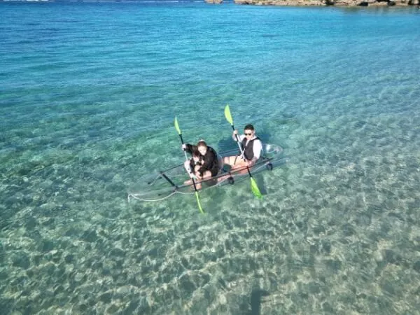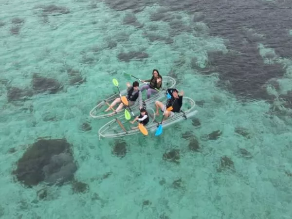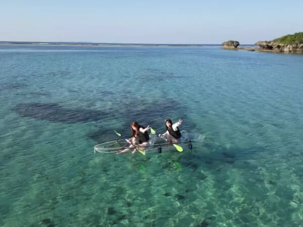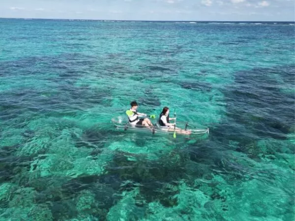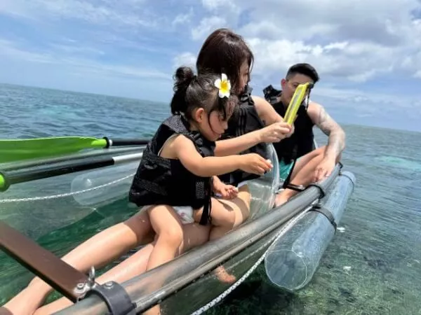 透明なクリアカヤックに乗って、海の上から熱帯魚やサンゴを眺められる大人気ツアーです。