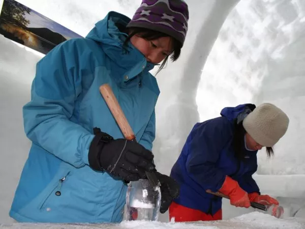 しかりべつ湖コタンのアイスバーの中でオリジナルの氷のグラスを作ってお好きな飲み物を飲みませんか?