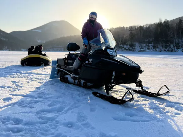しかりべつ湖コタンのスノーモービル会場付近で体験できます