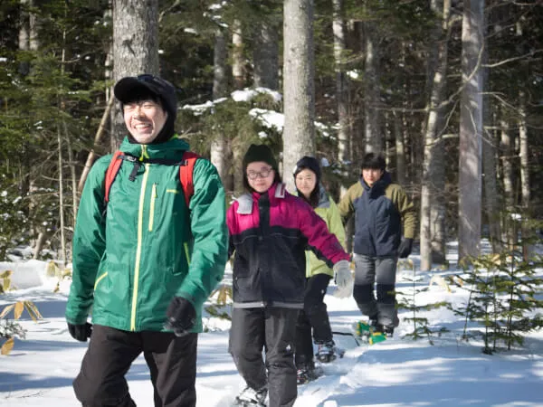 ふわっふわの雪の上をネイチャーガイドと一緒に散策しましょう。