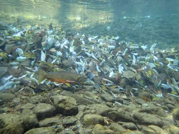 然別湖でのみ生息する ミヤベイワナは、 秋になると 産卵のために 川を遡ります。
