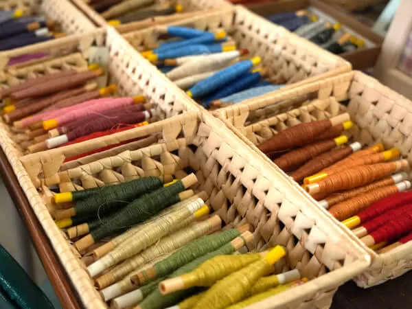 合わせる横糸は沢山の色からお好きな2色をお選びいただいています。