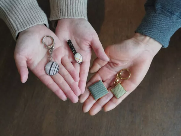 キーホルダー、ピアス、イヤリング、ブローチ、カフス、ネクタイピン、帯留からお好きなものを選んで製作頂きます。