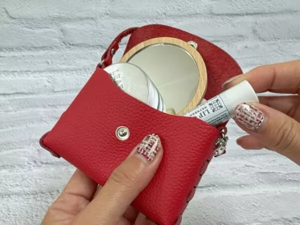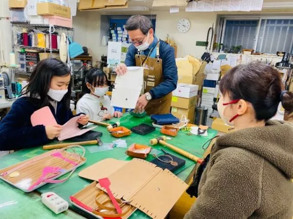大関鞄工房では本革を使ったミニポーチバック作り体験ができます。