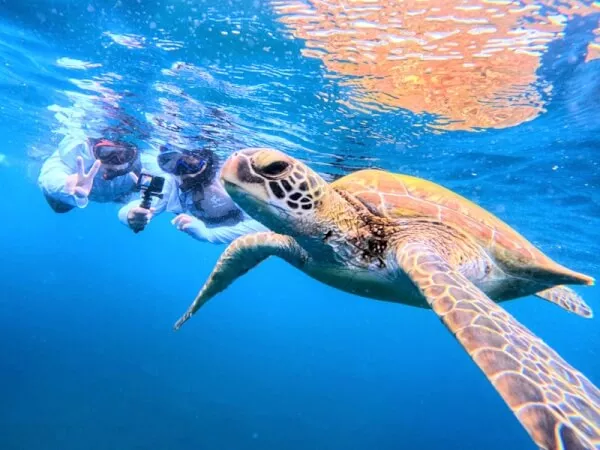タイミング次第では近距離でウミガメと遊泳できることも♪