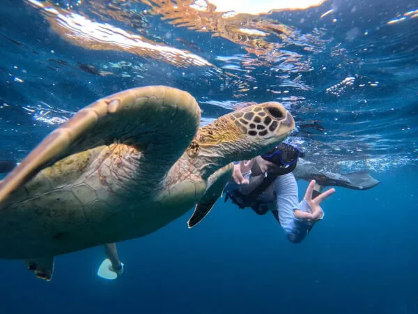 ウミガメがよく出没するスポットにご案内。間近でウミガメと泳げるチャンスがあるかも!?