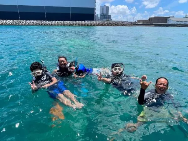┗シュノーケルの楽しさを伝えるのは当然のこと、それ以上のサービスが出来るよう、スタッフの十分なおもてなしを心がけております。