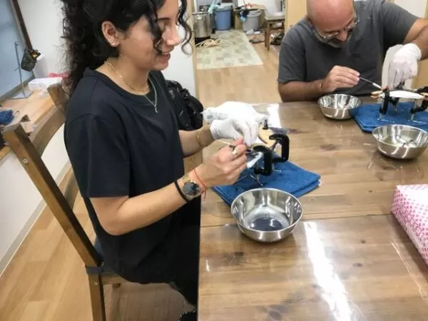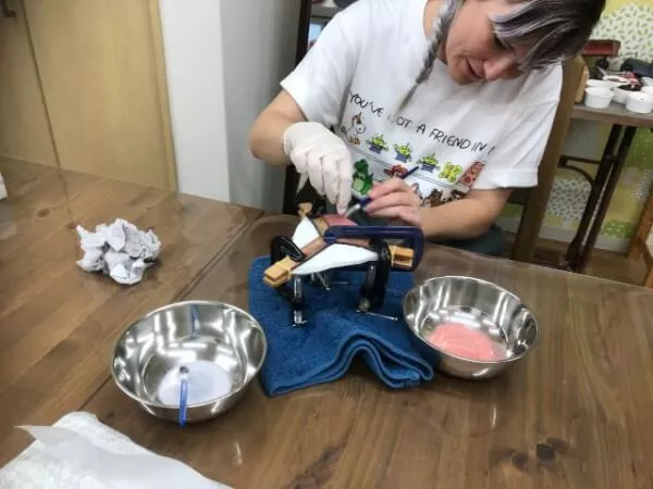 約10種類の中から好きな色をご自由に選んで色を付けて頂きます。