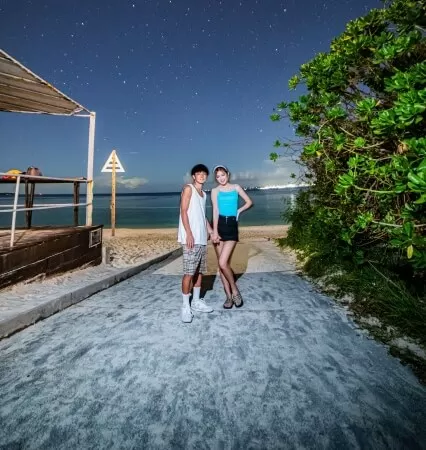 美ら海水族館から15分の場所、<2026卒業旅行応援企画>2/1~3/31 U18~U25 20%OFFホテルマハイナの裏に今は使われてない飛行場の跡地で滑走路があったただけに直線は長く開けてる場所で何もない所だけに星空としては環境が良くその場所で星や宇宙の解説に星空カメラマンが参加者を撮影するので自分なりのポージングをモデルのようにするもよし思い出の記念フォトを自慢するもよしカップル、夫婦、家族、友達で参加頂き楽しく撮影します☆彡