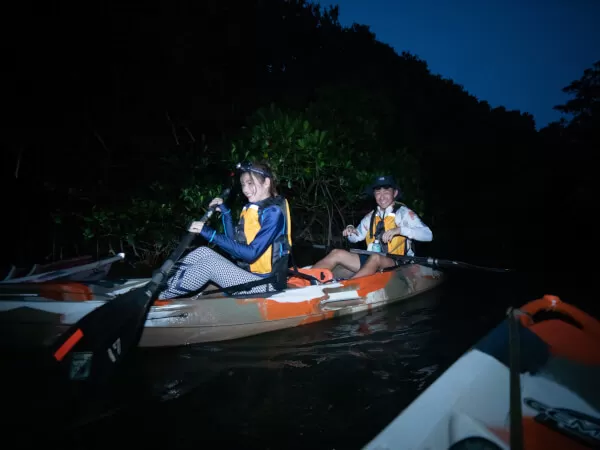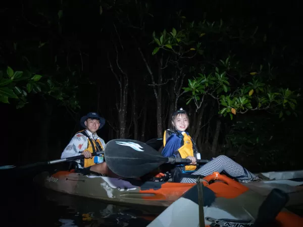 やんばるの玄関口、名護の東海岸にある大浦のマングローブで海洋生物や星空達をカヤックに乗りながら両方を楽しめ子供から大人まで両方を楽しめます☆彡真っ暗な場所だけに天気が良ければカヤックに寝そべりながら季節の星座を堪能頂いて星の案内人の説明を聞きながら独占感を味わってくださいね