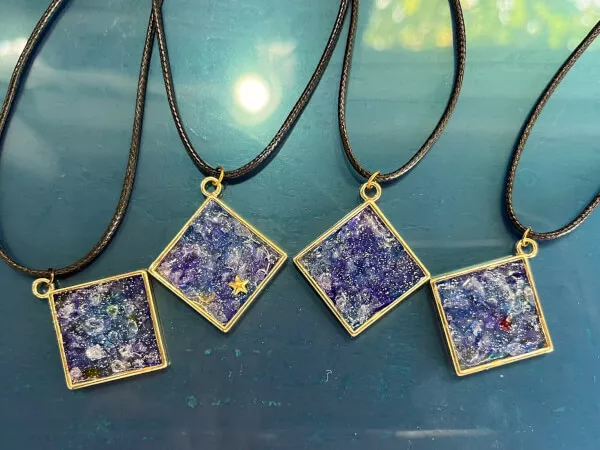 UVレジンでアクセサリー(キーホルダー、ネックレス、ブレスレッド、ヘアゴムの中から2コ)コースターもあり 若しくは手作りで望遠鏡作りを選んで貰ってワークショップが出来るのがカヌチャリゾート内のカヌチャ工房で毎日、16:00, 17:00.18:00スタートしました。子供から大人までアクセサリーだったらお揃いで作るも良し2コ作れるので60分楽しんで作っていきましょう
