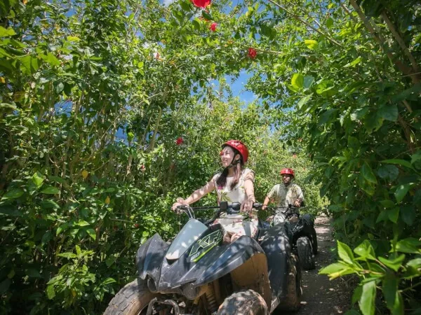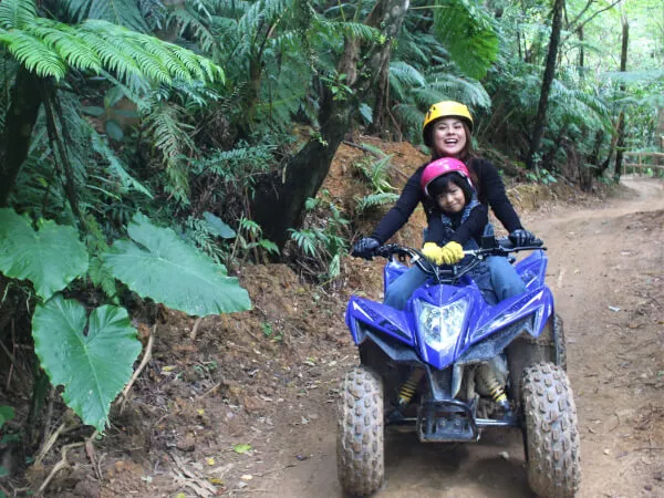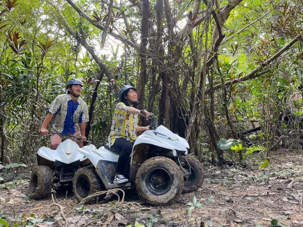 四輪バギーに乗って、ガイドと一緒に