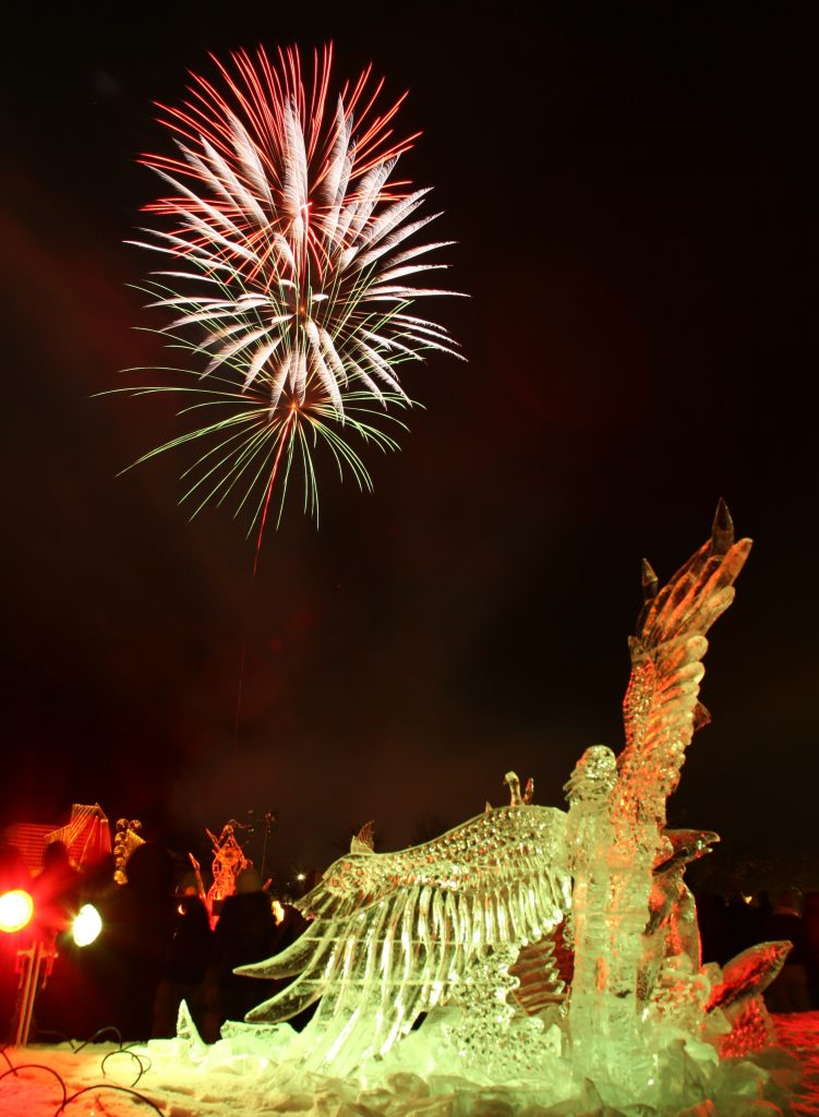 冬(1月)には氷彫刻コンクール東川大会、雪像コンテストや花火大会が楽しめる「ひがしかわ氷まつり」を開催、会場には多くの飲食ブースやゲームイベントも用意され、昼も夜も楽しむことができるんです。