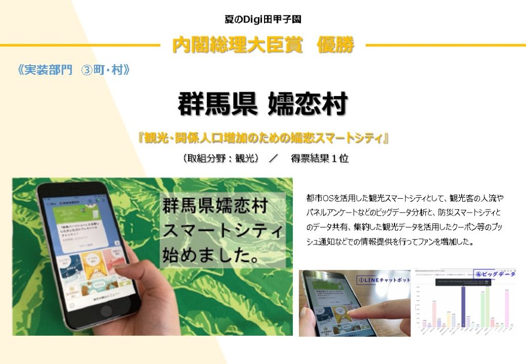 2022年度夏の「Digi田甲子園」のコンテストでは、実装部門(町・村)内閣総理大臣賞で優勝しました。