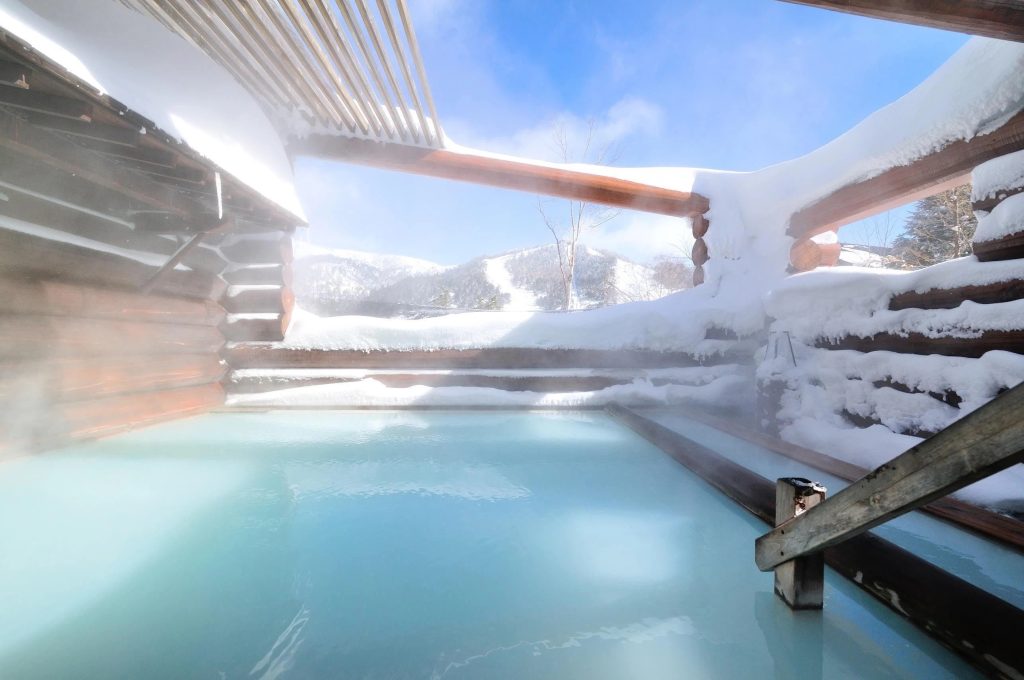万座温泉は白く濁った温泉、各宿泊施設では露天風呂も用意。日中の空や夜の星空も美しいです。初夏では新緑も深く、秋には紅葉の広がりを見せ、真白な冬は一面銀世界と四季折々に楽しみがある温泉地でもあるんです。