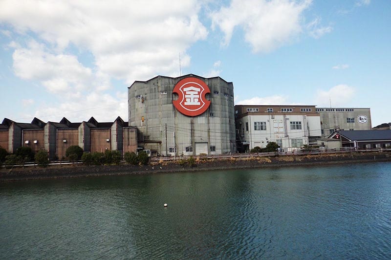 カニ醤油鑰屋(八町大路にある九州で最も古いといわれる老舗。社屋内の工場は、麹造りなどの作業風景を窓越しに見ることができる)
