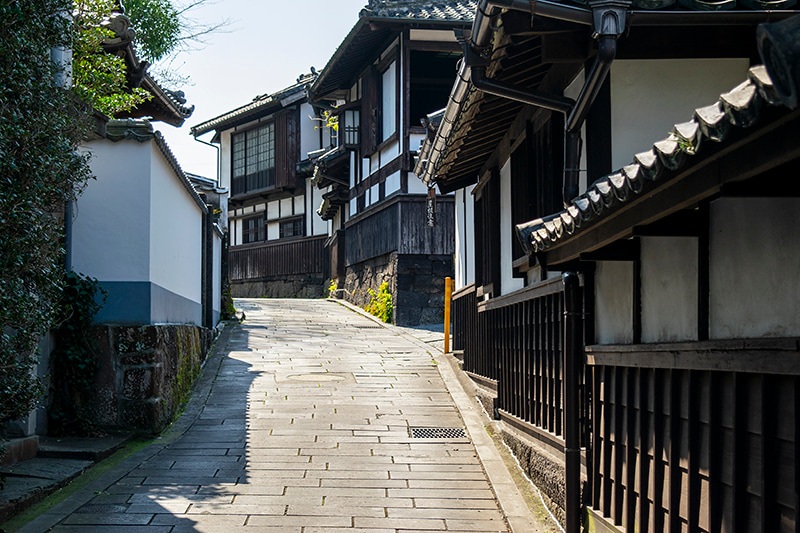 城下町の雰囲気を残す、「二王座歴史の道」には、白壁の土蔵や武家屋敷が立ち並び、タイムスリップしたかのような気分を味わえます。特に旧真光寺の前は「切り通し」と呼ばれる場所があり、ここは臼杵を代表する景観のひとつで、雨が降った後の濡れた石畳は雰囲気があり、1993(平成5)年11月には、国の都市景観100選にも選ばれているのです。