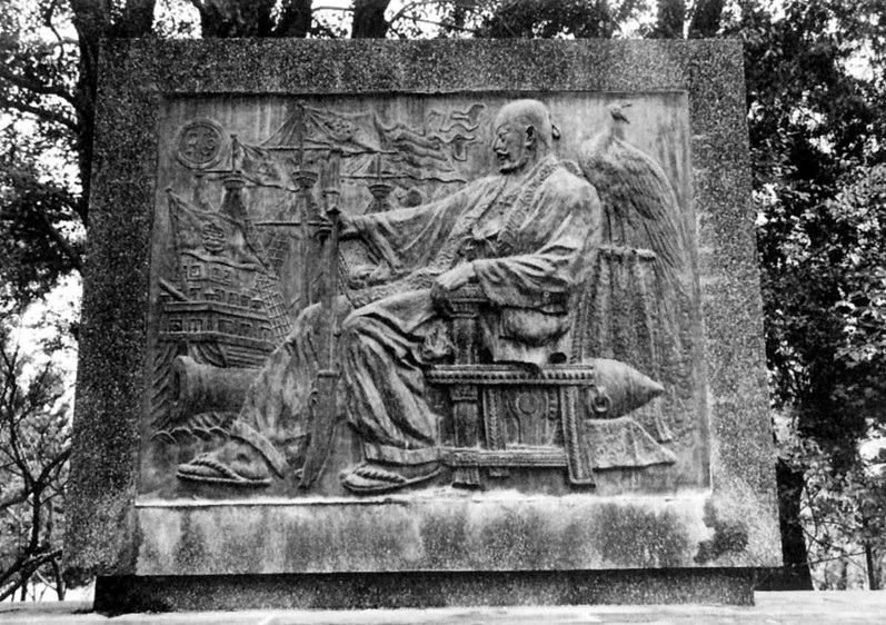 臼杵城跡にある大友 宗麟公のレリーフ(臼杵市のキリシタン文化の形成に大きな役割を果たす