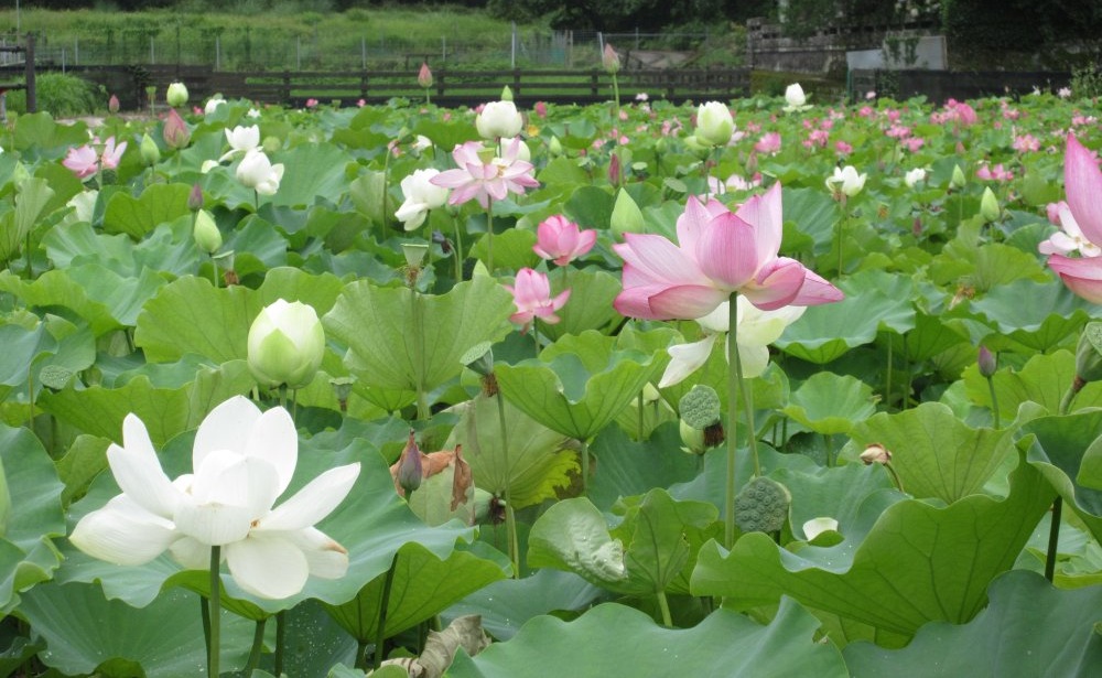 第6は、臼杵石仏の眼下にある臼杵磨崖仏公園では、夏になると一面に蓮の花が咲き誇ります。
