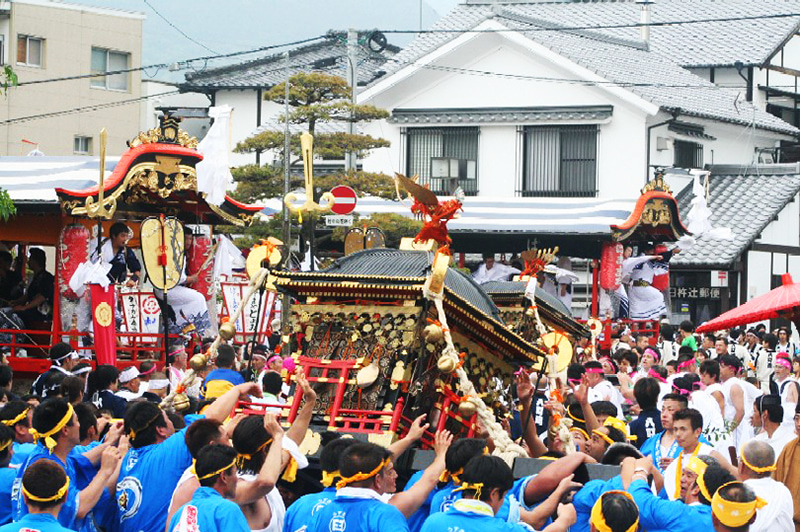 臼杵独特の御槍振りから始まる御神幸の様子や、2基の山車の囃子の違いなども見どころです。山車の囃子は祭り前の6月から練習が行われ、その迫力ある音色を聞くことができます。