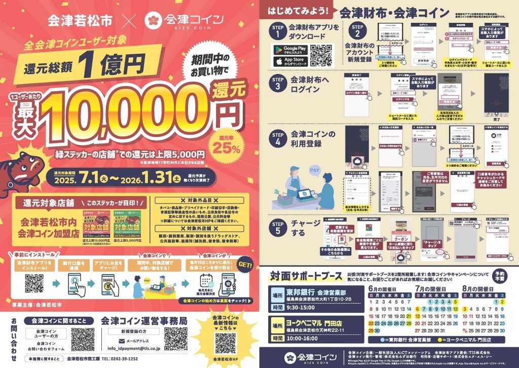 今、さまざまなキャッシュレス方法が増えましたが、会津地方では、会津コインを推奨しています。会津若松市は2025年7月1日から2026年1月末まで会津コインを使って市内の対象店舗で買い物や飲食をすると、決済金額に応じて25%分の会津コインが還元される消費喚起事業を行っています。