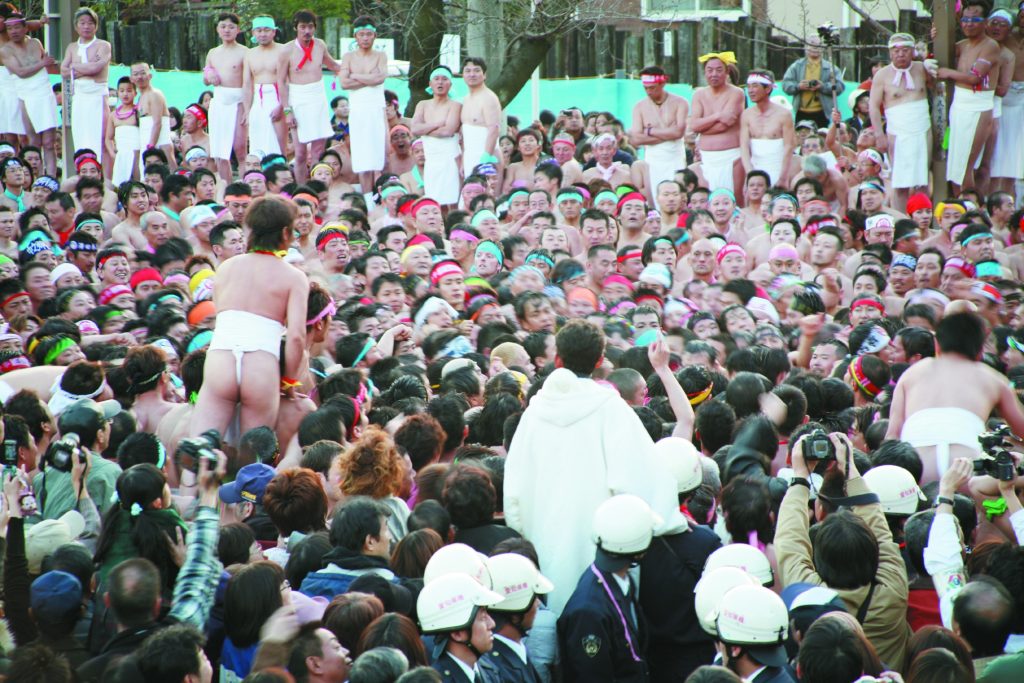 その「神男」に向けて皆さん集まってふんどしと白足袋を身につけた数千人の裸男たちが、「ワッショイ」という掛け声とともに激しくもみ合います。