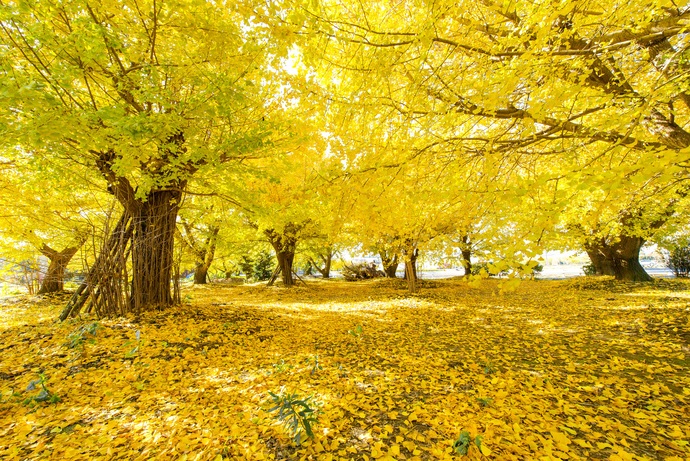 夜間には祖父江ぎんなんパークでのライトアップを実施し、ライトに照らされて輝きを増したイチョウの木が幻想的な姿を見せてくれます。祐専寺の境内では、稲沢市指定天然記念物で樹齢300年以上であるイチョウの大樹が存在感を放ち、来場者の目を楽しませています。