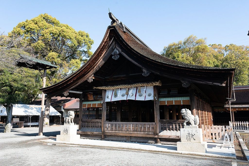 国府宮は、尾張地方の総鎮守神、農商業守護神、厄除神として広く信仰されております。本殿は 流造、拝殿は切妻造、全体の様式(建物の配置)は尾張式といわれ、本殿・渡殿・祭文殿・東西の 廻廊・拝殿・楼門と建ち並んでおります。