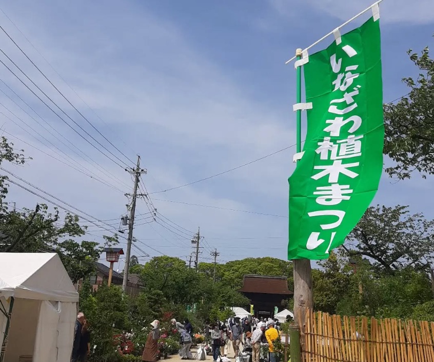 4月にはもう一つイベントがあります。4月下旬には植木イベント「いなざわ植木まつり~グリーン フェスティバル~」を毎年開催しています。先ほど、稲沢市は植木の四大生産地と申しましたが、このお祭りでは市内の植木生産者が直接植木や苗木を安価で提供することで、人々の緑への関心を高め、緑豊かな生活や地域づくりを目指しています。場所は国府宮参道と境内です。